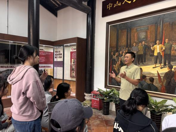 师生们首先来到珠江纵队司令部旧址。在历史陈列与讲解中,大家深入了解了抗日战争时期,中山地区医疗卫生工作者在党的领导下,克服艰难条件、守护军民健康的感人事迹。结合现场开展的岭南中草药辨识教学,同学们对革命年代中医药发挥的实际作用有了直观认识,对“红医精神”中蕴含的忠诚、担当与奉献有了更真切的体会。